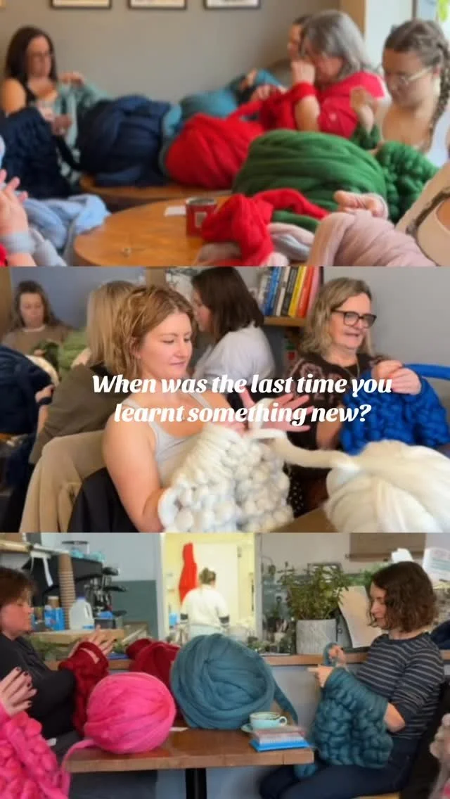 Arm knitting giant wool blankets and Christmas wreath workshops; group classes, private parties, Knit & Sip parties and corporate events