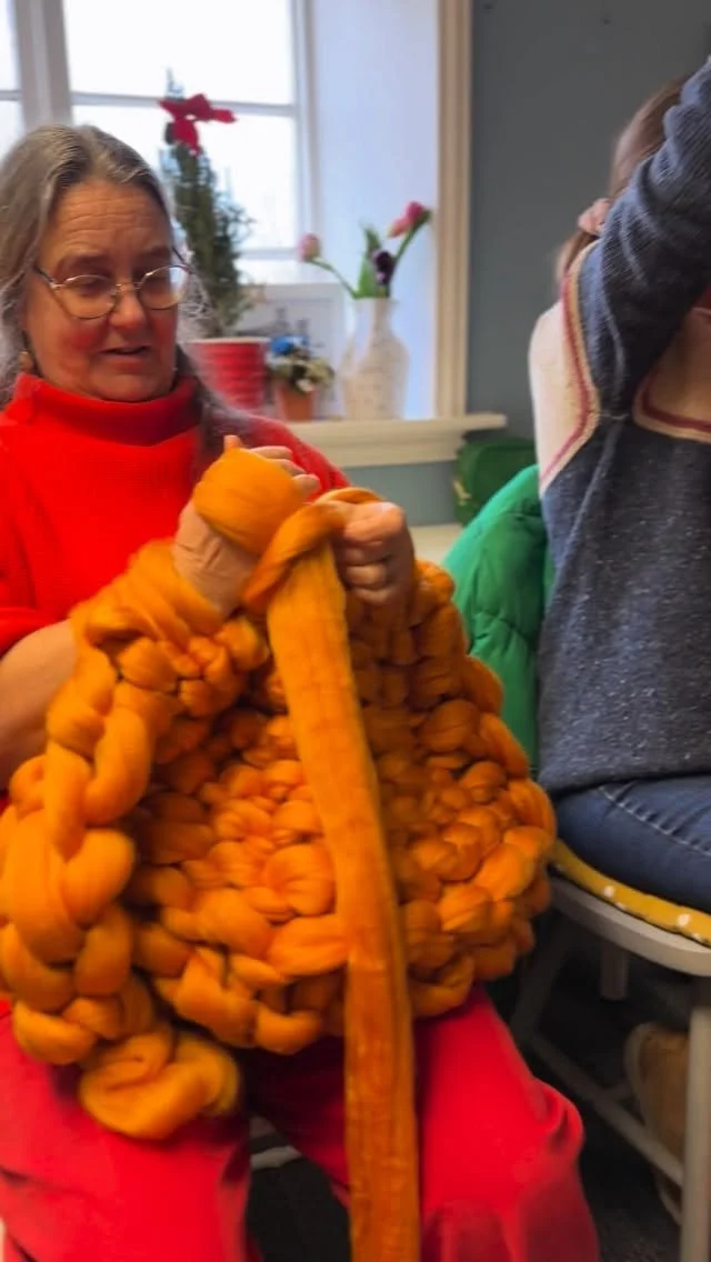 Arm knitting giant wool blankets and Christmas wreath workshops; group classes, private parties, Knit & Sip parties and corporate events